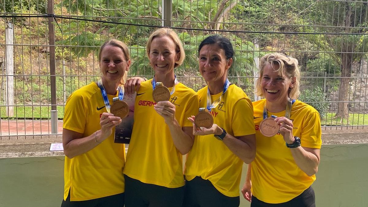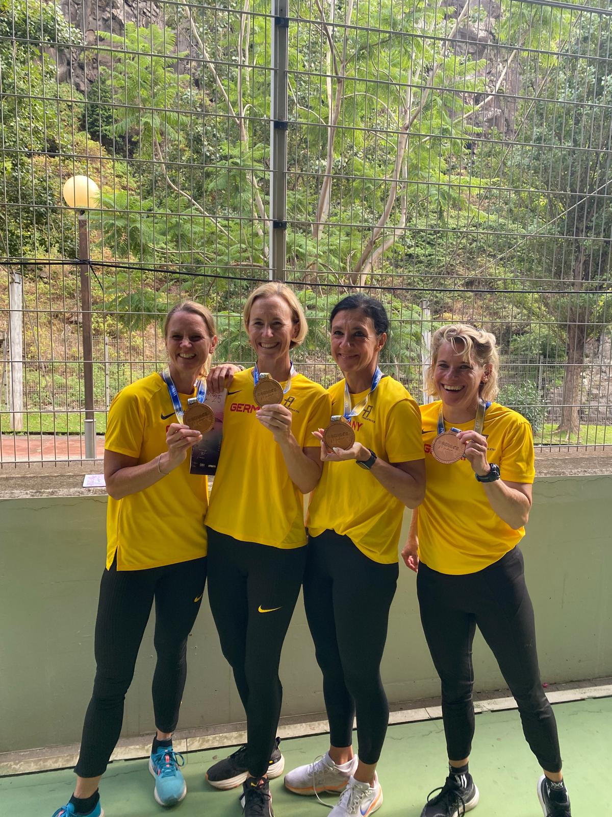 Die Bronzemedaille durfte Miriam Feyerabend mit der 4x100 m Staffel der W50 feiern, die in starken 51,85 sek als Dritte ins Ziel lief. Darüber hinaus belegte sie mit der 4x400 m Staffel der W50 den 4. Platz, mit der Mix Staffel den 7. und im Einzel über die 100 m den 9. Platz.